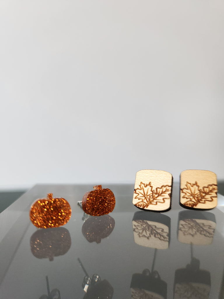 Fall Earrings | Pumpkin and Leaves Fall Studs